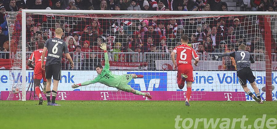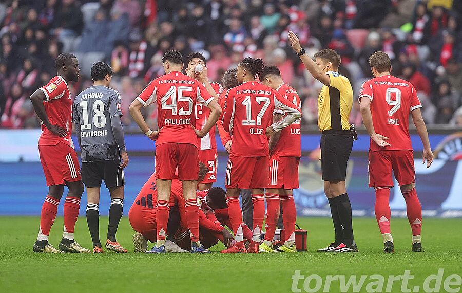 Die Bayern traten im ersten Durchgang sehr dominant auf und ließen die Gäste zunächst gar nicht zur Entfaltung kommen. Dadurch war Jonas Urbig auch lange Zeit nicht im Fokus. Die einzige Frankfurter Torchance, die sich ergab, erfolgte in der 39. Minute. Urbig konnte aber parieren, sodass die Münchner mit einer komfortablen 2:0-Führung in die Pause gingen.