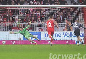 Jonas Urbig chancenlos bei Burkardts Elfmeter (foto: firo)