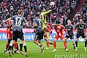 Wenige Minuten später erfolgte das 2:0 durch Kane. Ein Eckstoß von rechts wurde von Olise mit viel Schnitt auf den ersten Pfosten geschlagen, wo Stanišić auf Kane verlängerte und dieser im Korridor zwischen erstem Pfosten und Tormitte aus fünf Metern in die Tormitte traf. Santos wurde in der Mitte von einem Münchner bedrängt, sodass seine Bewegung zum ersten Pfosten schon verspätet erfolgte und der Keeper zum Zeitpunkt des Kopfballs gar keine gute Position mehr hatte, um weder den Ball anzugreifen noch den folgenden Kopfball in irgendeiner Form erreichen zu können.