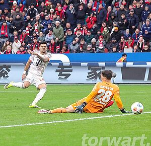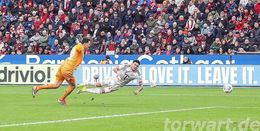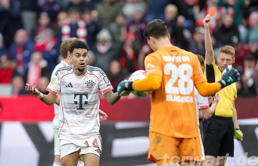 Im zweiten Durchgang hatte Blaswich Glück, als er bei einem Fehlpass Kane bediente und dieser später auch zum vermeintlichen Ausgleich traf, doch wurde Kane vom Keeper am Arm getroffen, sodass der Schiedsrichter auf Handspiel entschied. In der 69. Minute unterlief Andrich ein kapitaler Fehlpass, wodurch er Olise bediente und dieser halblinks im Strafraum an den Ball kam und diesen flach in die lange Ecke schob. Blaswich kam noch entgegen und machte sich breit, kam aber nicht mehr an das Spielgerät heran. In der Schlussphase lief Diaz allein auf Blaswich zu und fädelte ein, sodass er durch diese gewertete Schwalbe auch noch des Platzes verwiesen wurde. Leverkusen spielte damit in doppelter Überzahl.