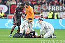 Nach rund 20 Minuten wurden die Gäste stärker. So erzielte Tah auch den vermeintlichen Ausgleichstreffer. Doch berührte Tah zuvor die Kugel mit dem Arm, sodass der Treffer keine Anerkennung fand. Anschließend zog sich Bayer etwas zurück und konzentrierte sich auf die Verteidigung. Weitere Münchner Chancen ergaben sich dadurch zunächst nicht. Ab der 42. Minute war Bayer dann in Überzahl.