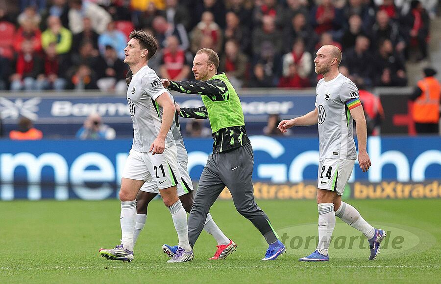 In der 53. Minute bekamen die Gastgeber einen weiteren Elfmeter zugesprochen. Diesen verwandelte Schick flach in die linke Ecke. Abermals war Grabara in die aus seiner Sicht linke Ecke unterwegs und daher wieder machtlos. In der 69. Minute traf Tapsoba für die nunmehr klar überlegenen Hausherren zum 4:3. Die Wolfsburger bekamen den Ball mehrfach im Strafraum nicht geklärt, sodass Tapsoba aus dem Gewühl heraus aus 7 Metern zentraler Position in die rechte Ecke traf. Für Grabara war die Sicht etwas verdeckt, sodass der Keeper viel zu spät den Ball sah, um in irgendeiner Form noch reagieren zu können.