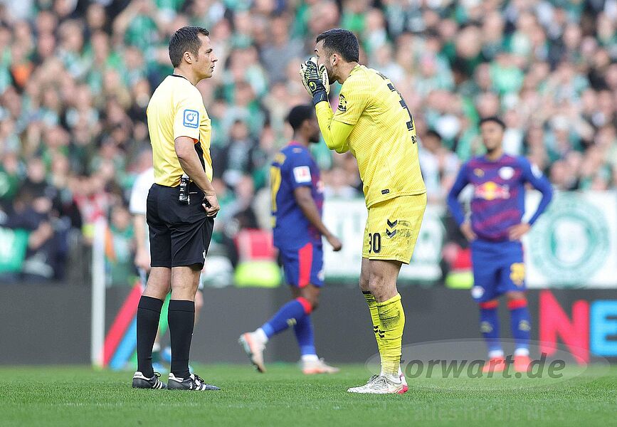 Es war eine seltsame erste Hälfte aus Sicht der Bremer. Unmittelbar vor dem Leipziger Führungstreffer hatte Bremen die große Chance, selbst in Führung zu gehen. Aber Vandevoordt machte diesen potenziellen Treffer mit einer tollen Tat zunichte. Auch im weiteren Verlauf der ersten Halbzeit hatte Bremen noch weitere Abschlüsse zu verzeichnen, doch wieder war es der Leipziger Schlussmann, der im Alleingang die Führung verteidigte.