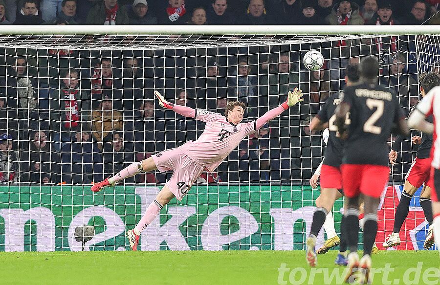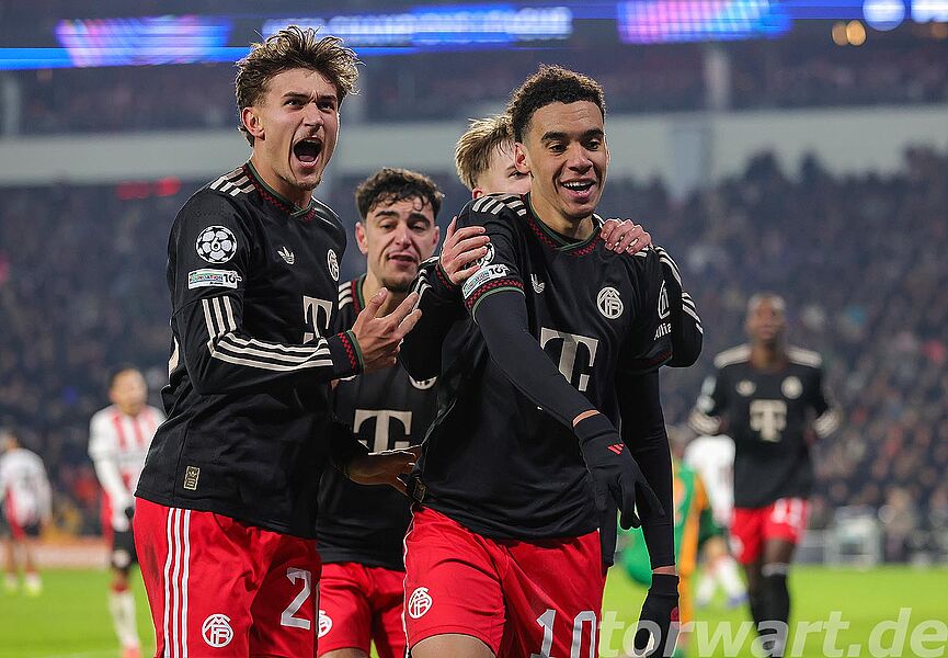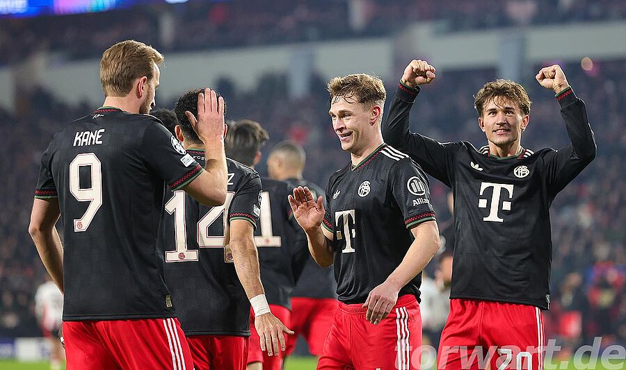 Da der deutsche Rekordmeister vor dem letzten Champions-League-Spiel bereits als sicherer Achtelfinal-Teilnehmer feststand, durfte wieder Jonas Urbig spielen, wie bereits am Wochenende bei der Heimspielniederlage gegen den FC Augsburg. Allein in den ersten 20 Minuten hatten die Hausherren schon drei nennenswerte Abschlüsse. Bei allen drei Situationen war der Münchner Torwart zur Stelle. Vor allem in der 15. Minute zeigte der Vertreter von Manuel Neuer eine starke Parade und holte einen Versuch hoch aus der rechten Ecke. Kurz vor der Pause zeigte Urbig eine weitere herausragende Parade und war der Garant dafür, dass die Bayern mit einem eher schmeichelhaften 0:0 in die Pause gingen.