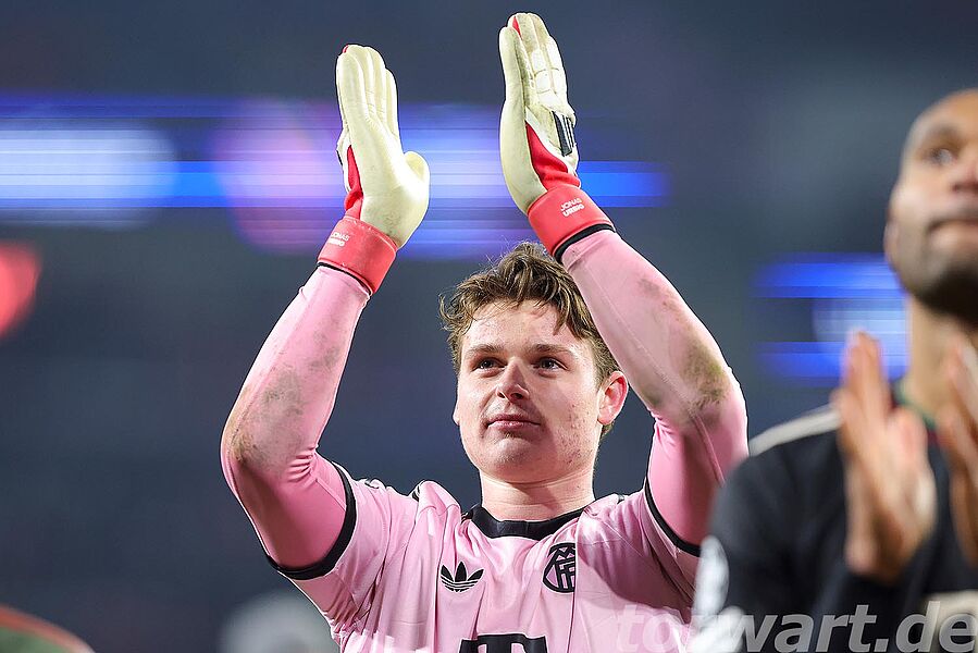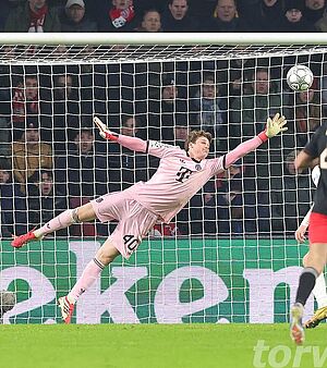 Jonas Urbig hielt mit starken Paraden die Bayern im Spiel (foto: firo)