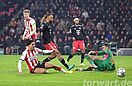 In der ersten Halbzeit war der niederländische Meister das bessere Team und ließ gegen zu diesem Zeitpunkt eher uninspiriert wirkende Gäste nur wenig zu. So musste Matej Kovar im Rahmen der Torverteidigung zweimal im ersten Durchgang eingreifen, hatte damit aber keine Probleme. Die eigentlich beste Chance hatte Bischof zuvor in der 6. Minute, als sein Schuss die Querlatte noch touchierte. Kovar wäre nicht mehr herangekommen.