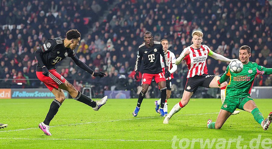 In der 78. Minute erzielte Saibari mit einem wunderschönen Treffer den Ausgleich zum 1:1. Dieser kam rechts versetzt an der Strafraumkante zum Schuss und setzte diesen unhaltbar für Urbig in den Winkel der langen Ecke. Der Keeper streckte sich noch durch und griff über, doch war bei diesem Schuss für den an diesem Abend so starken Torwart nichts zu halten. Mehr hatten die Hausherren im Anschluss aber nicht mehr zu bieten, sodass die Bayern mit dem Sieg noch den zweiten Platz in der Liga-Phase sichern konnten.