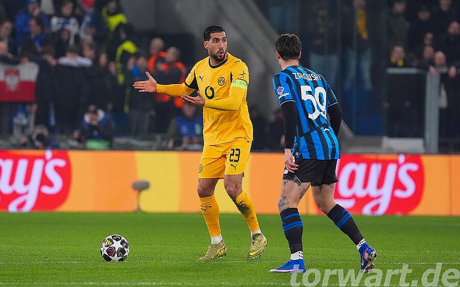 Der BVB wurde von den Bergamasken in der Anfangsphase regelrecht hergespielt. Es dauerte dadurch bis zur 29. Minute, ehe Brandt die erste richtig gute Chance für die Gäste verzeichnen konnte. Bei dem Flachschuss auf die kurze Ecke aus leicht links versetzten elf Metern war Carnesecchi jedoch blitzschnell unten und lenkte den Ball überragend zur Seite weg. Viel mehr hatte die Dortmunder Borussia bis zur Pause in der Offensive nicht mehr zu verzeichnen.