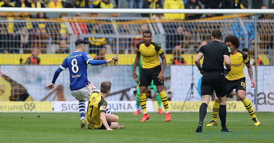 Roman Bürki / Borussia Dortmund: Bürki jubelte nach dem guten Start der Borussia wohl noch über den Führungstreffer, dann gab es plötzlich Elfmeter für Königsblau: Embolo hatte vor McKennies Schuss versucht, abzuziehen, aber aus kürzester Distanz Weigls ausgestreckten Arm getroffen. Nach Ansicht der Bilder in der Review-Area zeigte der Unparteiische auf den Punkt - Caligiuri verwandelte sicher zum Ausgleich und verlud Bürki. In der 28. Minute ging Schalke dann plötzlich in Führung: Sané übersprang nach Caligiuris Ecke Akanji und nickte ein. Dortmund machte sich das Leben durch Platzverweise selber schwer und wurde bestraft, denn Caligiuri verwandelte einen sehenswerten Freistoß unhaltbar für Bürki. Embolo machte in den Schlussminuten den Deckel drauf und Bürki kassierte vier Gegentore, bei denen er machtlos war. Mit einer fehlerfreien Passquote und null Paraden verliert er das Derby und wohl das Rennen um die Meisterschaft.