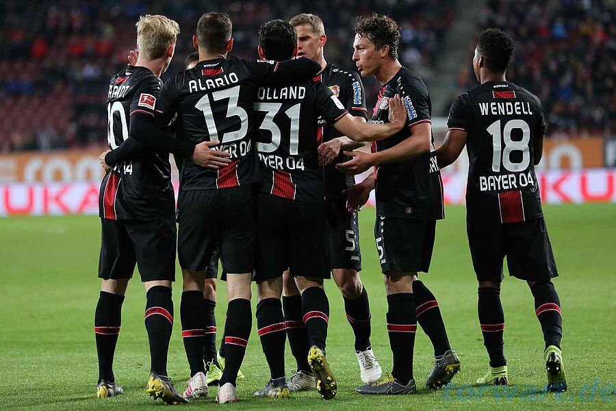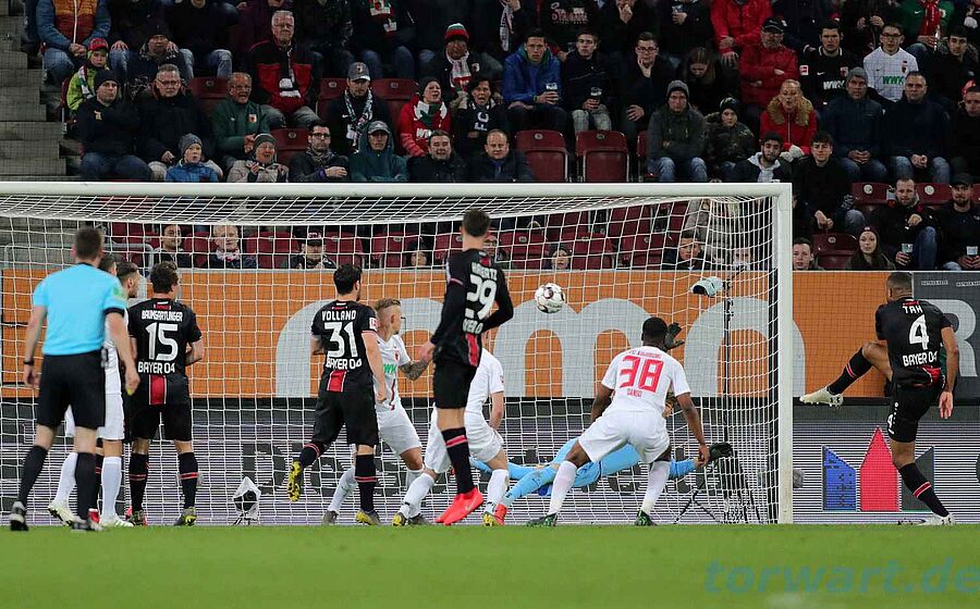 Gregor Kobel / FC Augsburg: Der junge Kobel kehrte nach überstandener Gehirnerschütterung wieder zurück zwischen die Pfosten, Luthe nahm wieder auf der Bank Platz. Und in der ersten Halbzeit musste der von der TSG 1899 Hoffenheim ausgeliehene Torhüter schon hellwach sein, denn die Werkself startete mit viel Schwung in die Partie. Kobel agierte sowohl auf der Linie als auch in der aktiven Raumverteidigung sehr konsequent war beim Treffer der Gäste aber chancenlos: Volland knallte den Ball nach feinem Schnittstellenpass von Aranguiz humorlos unter die Latte. In der 48. Minute ging die Werkself dann auch in Führung: Volland flankte von links halbhoch in die Mitte, wo Havertz einen Schritt vor Stafylidis an den Ball kam und diesen mit dem ersten Kontakt kunstvoll über Kobel hinweg ins lange rechte Eck verlängerte. Die Werkself übernahm die Kontrolle und Kobel patzte: Kobel wehrte einen Brandt-Freistoß in die Mitte ab, Tah staubte ab. Beim vierten Gegentreffer war Kobel, der einen dann insgesamt nur durchwachsenen Auftritt zeigte, chancenlos.