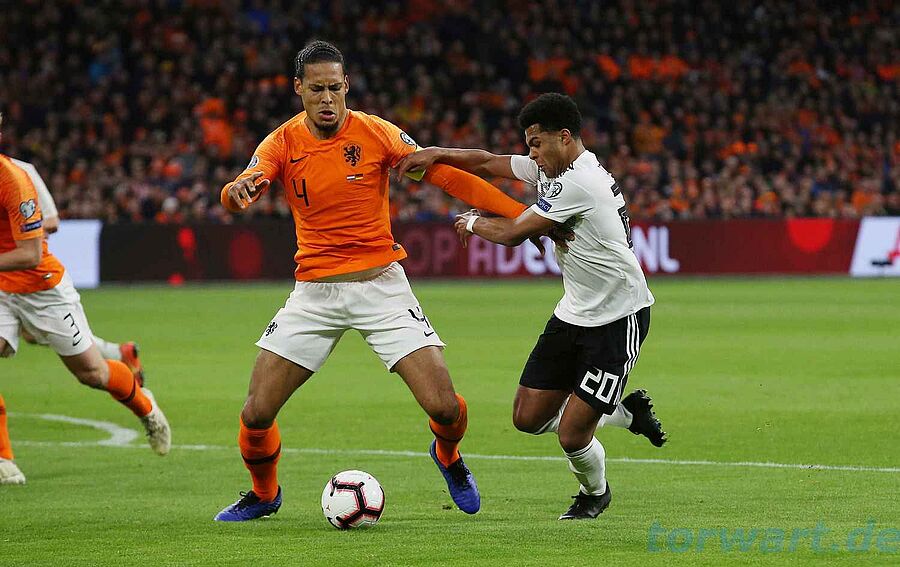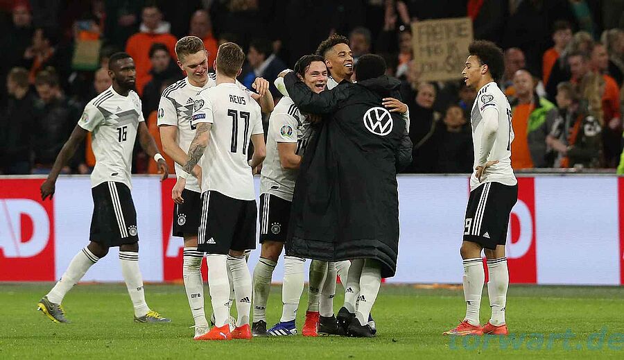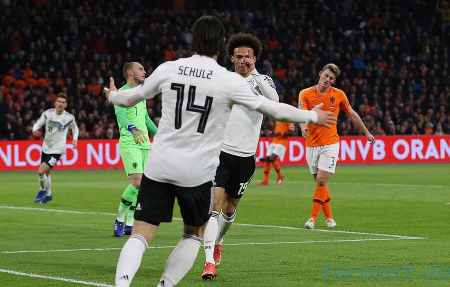 Jasper Cillessen / Niederlande: Der zweite Torhüter des FC Barcelona musste im Auftaktspiel zur EM-Qualifikation von Beginn an hellwach sein, denn die deutsche Mannschaft startete sehr fokussiert und mutig in die Partie in Amsterdam. Bereits nach drei Minuten näherte sich Gnabry erstmals brandgefährlich an, doch Cillessen war im entscheidenden Moment zur Stelle. Mit einem guten Positionsspiel war Cillessen zur Stelle. Nach gut einer viertel Stunde ging die Mannschaft von Bundestrainer Joachim Löw dann verdient in Führung: Schulz hatte auf links zu viel Platz, im Strafraum rutschte de Ligt weg - und Sané feuerte das Leder aus halblinker Position mit Wucht und Präzision zum 1:0 ins lange Eck. Cillessen war aus kurzer Distanz chancenlos und konnte den verdienten Führungstreffer nicht verhindern. Die Niederlande kam fortan besser ins Spiel, doch die deutsche Mannschaft erhöhte noch vor der Pause: Rüdiger schickte den pfeilschnellen Angreifer Gnabry auf die linke Seite, wo er sich auch von van Dijk nicht stoppen ließ und das Leder überragend ins rechte obere Eck schlenzte - 2:0. Cillessen war erneut chancenlos und sichtlich bedient.