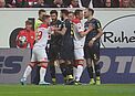 Timo Horn / 1. FC Köln: Köln war von Beginn an die spielbestimmende Mannschaft und war im Derby obenauf. Aus dem Nichts köpfte dann plötzlich Hennings an den rechten Außenpfosten. Mit der ersten gefährlichen Situation wäre Köln beinahe in Rückstand geraten, Horn wäre hier machtlos gewesen. In der 38. Minute war Horn dann geschlagen: Nach einem schnellen Einwurf wurde Morales im Strafraum von Czichos von den Beinen geholt. Den fälligen Strafstoß verwandelte Hennings sicher - 1:0. Horn spekulierte auf die falsche Seite. Mitte der zweiten Halbzeit war der ansonsten beschäftigungsarme Horn erneut geschlagen: Ayhan drosch die Kugel an der Strafraumkante einfach nach vorne, Thommy nahm den Ball im Vollsprint auf, düpierte Schindler und schoss überlegt links oben ein. Horn war erneut machtlos. Die Fortuna hatte Platz und hätte um ein Haar auf 3:0 erhöhen können, doch nach Zuspiel von Thommy verfehlte Hennings knapp sein Ziel. So blieb es letztlich beim nicht unverdienten 2:0-Erfolg für die Hausherren. Bittere Pleite für Horn und den FC.