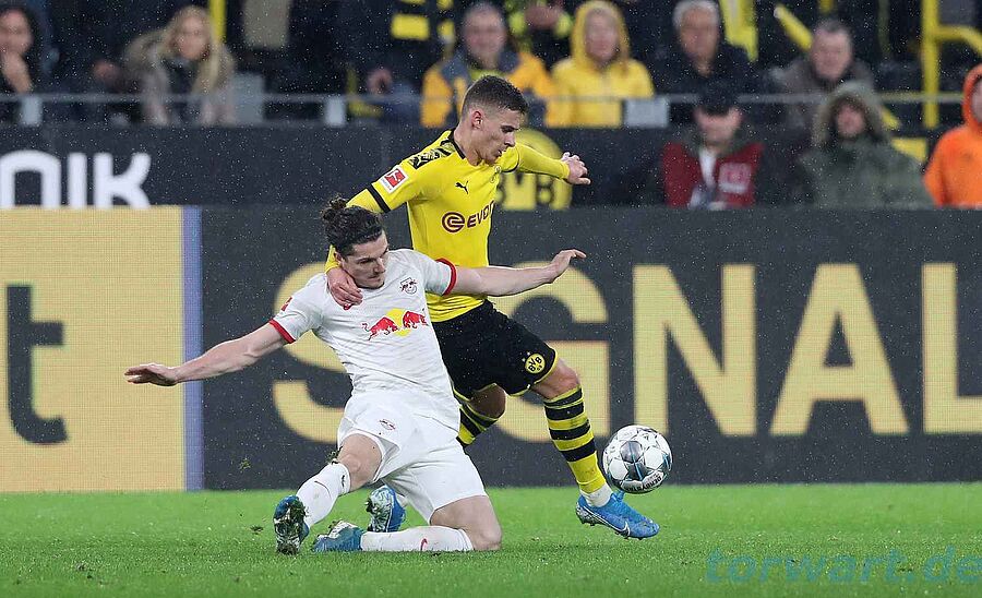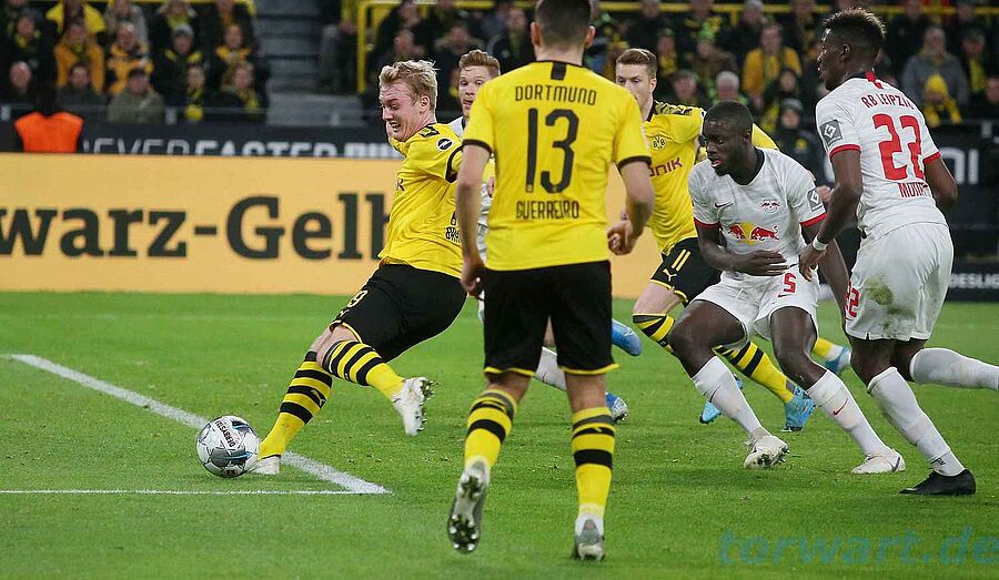 Peter Gulacsi / RB Leipzig: Die Hausherren bauten ihre Dominanz behutsam auf, wurden dabei fast minütlich sicherer. Gulacsi sah sich von Beginn an sehr zielstrebigen Angriffen gegenüber. In Minute 15 köpfte Hummels nach einem Eckstoß erneut, Gulacsi verhinderte den Einschlag mit einer starken Flugeinlage. Sechs Zeigerumdrehungen später scheiterte auch der äußerst aktive Hakimi aus spitzem Winkel am Ungar, der kurz darauf allerdings nicht gut aussah: Den unplatzierten Zehn-Meter-Schuss des frei vor ihm auftauchenden Sancho konnte Gulacsi noch abwehren, über die zweite Welle zog Weigl aus 22 Metern ab - den Aufsetzer hätte Leipzigs Keeper halten müssen. Zwar flatterte der Ball, doch der Auftakt von Gulascsi war nicht gut. In der 34. Minute legte der BVB nach: Sancho drang links in den Sechzehner ein und bediente den einlaufenden Brandt, der sich mit zwei Kontakten herrlich um Upamecano drehte und eiskalt ins lange Eck vollstreckte - 2:0 BVB und Gulacsi war nun chancenlos. Gualcsi sah dann den direkten Ausgleich nach der Pause mit einem Doppelschlag, musste aber kurz darauf erneut hinter sich greifen: Die Leipziger Abwehr um Klostermann hatte den Engländer in ihrem Rücken aus den Augen verloren, Sancho markierte aus neun Metern wuchtig das 3:2. Am Ende konnte er sich aber nach seinem Patzer über den Punktgewinn beim BVB freuen.