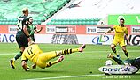 In der 32. Spielminute erzielte die Borussia jedoch das 0:1. Dortmund spielte sich nach schnellem Umschaltspiel gut durch. Hazard lief dabei in Richtung Torauslinie. Casteels schob in Richtung des Belgiers, so dass ein möglicher Querpass auf den mitlaufenden Haaland für Hazard zu einer besseren Spieloption wurde. Haaland verfehlte den Querpass am kurzen Pfosten und so kam der Ball zum am langen Pfosten mitlaufenden Guerreiro, der mühelos ins leere Tor einschieben konnte.