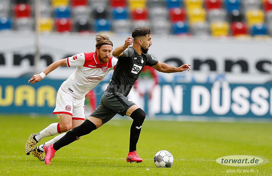 In Düsseldorf beginnt die Partie für Oliver Baumann sehr rasant. In den ersten 5 Spielminuten hatte Düsseldorf die Oberhand und kam auch zur ersten Torchance. Stöger konnte am linken 16er-Eck unbedrängt eine Flanke auf den am langen Pfosten stehenden, völlig freien, Rouwen Hennings schlagen, der gegen Baumanns Laufrichtung den Ball in das Tor köpft.