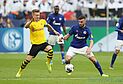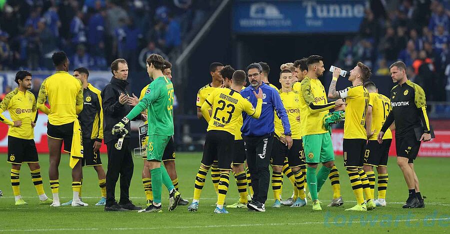 Marwin Hitz / Borussia Dortmund: Bürki fiel(Infekt) kurzfristig aus, für ihn startete Hitz. Mit einigen ungefährlichen und unpräzisen Fernschüssen näherte sich Königsblau dem Dortmunder Gehäuse von Beginn an an (zur Pause 9:3 Schüsse), ehe Sané ein Ausrufezeichen setzte. Der Innenverteidiger scheiterte nach einer Oczipka-Ecke per Kopf an der Querlatte - Schalkes erste Großchance. Hier wäre Hitz chancenlos gewesen. Die zweite große Gelegenheit für die Knappen vergab Serdar, der wieder am Aluminium scheiterte: Nachdem Hummels Delaney beim Klärungsversuch abschoss, scheiterte der Serdar am Innenpfosten. Auch anschließend behielt Schalke das Heft des Handelns in der Hand. Nach Serdar-Steilpass scheiterte Matondo frei vor dem Tor an Hitz. Im direkten Duell spielte Hitz seine ganze Erfahrung aus. Im weitern Verlauf wusste Hitz immer wieder mit cleveren Aktionen die Tore der Schalker zu verhindern. Hitz zeigte eine stabile Leistung und war in den entscheidenden Momenten zur Stelle.