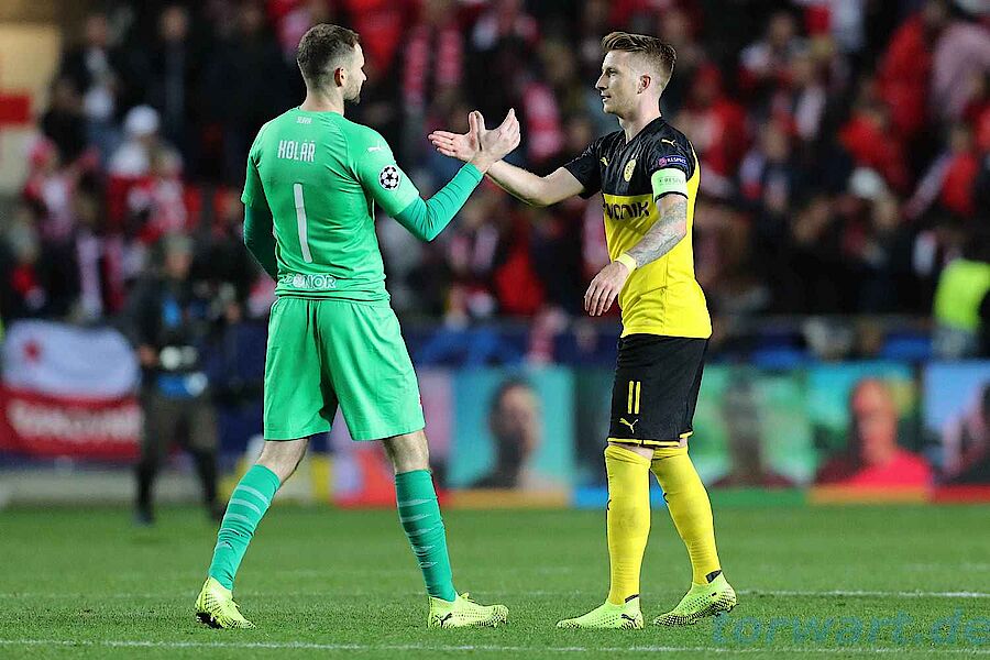 Ondrej Kolar / Slavia Prag: Der routinierte Torhüter der Tschechen musste früh in der Partie hellwachs sein, denn der BVB übernahm sofort die Kontrolle. Bereits nach gut einer Minute verlangte Sancho Prags Keeper Kolar eine wichtige Parade ab. Aus kurzer Distanz und spitzem Winkel tauchte Kolar blitzschnell ab und lenkte den Ball so um den Pfosten. Die Vorderleute von Kolar kamen in der Folge besser ins Spiel und Dortmund versuchte immer wieder im Umschaltspiel gefährlich zu werden. So auch bei einem Konter, als Brandt die Kugel in den Lauf von Hakimi schlug, der bei seinem Solo nur richtige Entscheidungen traf: Im Sechzehner ließ der Außenbahn-Allrounder Sevcik ins Leere laufen, den herauseilenden Kolar umkurvte er vor seinem souveränen Linksschuss in die Maschen. Kolar war beim Führungstreffer des BVB chancenlos. Kurz darauf konnte Hakimi erst kurz vor Kolar gestoppt werden, der seine Mannschaft mit einer starken Parade erneut im Spiel hielt. Auffällig bei Kolar war das riskante Passspiel, mit welchem er das Spiel der Prager immer wieder gekonnt eröffnete. Kurz nach Wiederbeginn vergab Sancho, der alleine auf Kolar zulaufen durfte, die Riesenchance auf das 2:0, weil sich der Engländer im ungünstigsten Moment die Kugel zu weit vorgelegt hatte. In den Schlussminuten war Kolar dann erneut geschlagen: Wieder hieß der Vorlagengeber Brandt, wieder startete Hakimi mit Tempo durch - und schob vor Kolar cool zur Entscheidung ein. In der Nachspielzeit gelang dem eingewechselten Götze dann sogar fast noch das 3:0, sodass Kolar am Ende eine noch höhere Niederlage verhinderte.