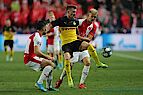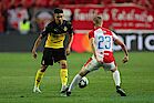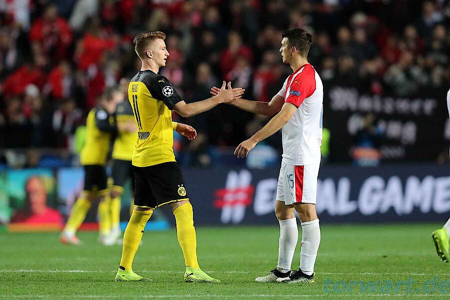 Roman Bürki / Borussia Dortmund: Zwar agierten die Vorderleute von Bürki von Beginn an spielbestimmend, doch mit zunehmender Spielzeit fanden auch die Gastgeber besser in die Parie. Nach einem Traumpass von Stanciu in der 21. Minute tauchte Masopust alleine vor Bürki auf, der mit einer starken Fußparade die Null hielt. Bis zu diesem Zeitpunkt wusste Bürki, das Pressing der Gastgeber gekonnt auszuspielen und zeigte eine gute, beidfüßige Beinarbeit. Drei Zeigerumdrehungen später wischte der Schweizer auch einen Freistoß-Aufsetzer von Stanciu aus dem Eck. Der Ball kam im letzten Moment noch unglücklich auf, sodass Bürki sich komplett strecken musste. Bei schwierigen und nassen Platzverhältnissen hielt Bürki seine Mannschaft in dieser Phase im Spiel. Erst Mitte der zweiten Halbzeit wurden die Tschechen wieder ansatzweise gefährlich: Olayinka verpasste in Minute 64 nach einer Ecke knapp, Sevcik prüfte Bürki aus der zweiten Reihe. Bürki zeigte ein gutes Positionsspiel und hatte folglich keine Probleme. Im weiteren Verlauf der Partie agierte der ehemalige Schweizer Nationaltorhüter fehlerfrei und hielt die Null. Starker Auftritt von Roman Bürki in Prag.