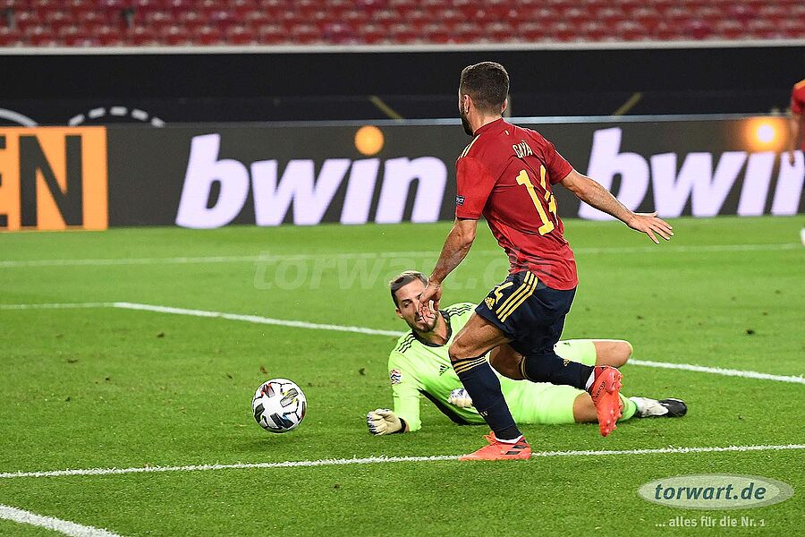 Nach der Pause agierte Deutschland meist aus Kontern heraus, sodass die gut stehenden Spanier nur noch wenig zuließen, aber selbst kaum noch zu nennenswerten Chancen kamen. Allerdings resultierte aus dem ersten gefährlich Konter auch die deutsche Führung durch Timo Werner. Da zwei Verteidiger diesen Schuss von Werner verdeckten, konnte De Gea nicht mehr reagieren und war letztlich machtlos. Weitere gefährliche Torgelegenheiten hatte er wiederum nicht zu überstehen, da er auch mit guter Raumverteidigung manche Möglichkeiten im Keim erstickte.