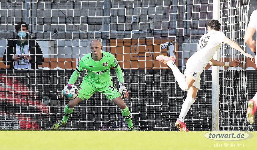Aus Sicht von Leverkusens Nummer 2, der weiterhin den verletzten Hradecky vertrat, hätte das Spiel gar nicht schlechter beginnen können. Lomb wollte nach 5 Minuten einen Rückpass in Ruhe verarbeiten, wurde dabei allerdings ein wenig von Niederlechner unter Druck gesetzt. Als Lomb zum weiten Schlag mit dem linken Fuß ansetzen wollte, spitzelte er sich den Ball mit dem Standbein ein wenig nach vorn. Dadurch verfehlte er mit dem linken Schussbein die Kugel und legte somit unfreiwillig für Niederlechner vor, der den Ball nur noch ins leere Tor schieben musste. Es war ein kapitaler Fauxpas, der aufgrund eines kleinen fehlerhaften Details entstand.