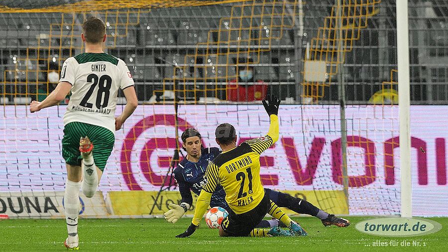 In der 26. Minute brachte Reus den Gastgeber in Front. Malen tankte sich über links in den Strafraum und kam frei vor Sommer zu einem relativ zentralen Abschluss. Sommer konnte den Schuss aus kurzer Distanz blocken, ließ diesen aber nach vorn zu Reus prallen, der den Ball noch annahm und für Sommer unhaltbar halbhoch im linken Eck versenkte. 5 Minuten später erhöhte Malen im 1 gegen 1 gegen Sommer auf 2:0. Durch einen Konter war Malen vollkommen allein vor Sommer und schob flach auf Sommers rechte Ecke. Der Torwart spekulierte bereits auf diese Seite und war auch schnell am Boden. Allerdings rutschte ihm dennoch den Ball unter dem Körper hindurch ins Tor. Pech für den Schlussmann.