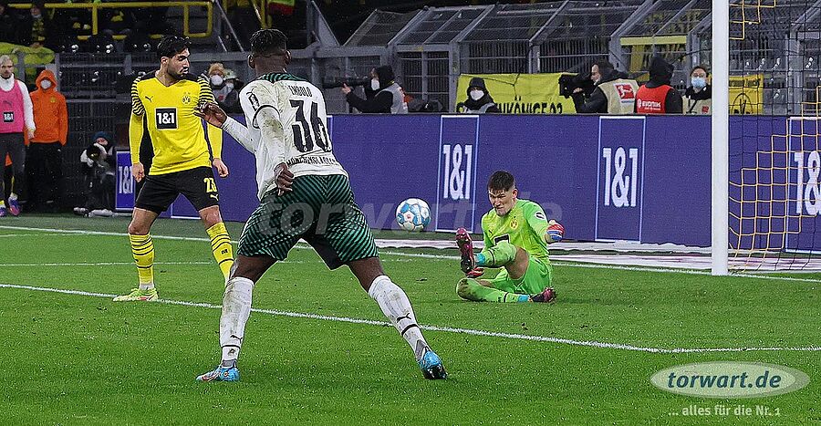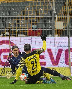 Gregor Kobel konnte mit solider Leistung den Rücken der Dortmunder zum 6:0 freihalten (foto: firo)