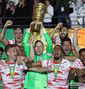 Peter Gulacsi konnte als Leipziger Kapitän den ersten Titel für RB holen (foto: firo)