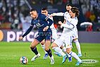 Unglück für Real Madrid und Thibaut Courtois. Real-Mittelfeldspieler fälscht Mbappés Schuss zum 1:0 leicht ab und lenkt ihn durch die Beine Courtios (foto: firo)