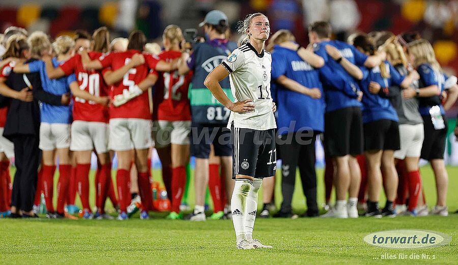 Die DFB-Frauen starten stark in die Europameisterschaft und gewinnen souverän gegen die durchaus hochgehandelten Däninnen um die teuerste Spielerin der Welt, Pernille Hader, mit 4:0. Letztlich war das Spiel ähnlich einseitig, wie es das Ergebnis vermuten lässt. Lediglich Mitte der ersten Halbzeit, unmittelbar nach der deutschen Führung waren die Däninnen stark und hatten auch mit einem sehenswerten Schuss aus 20 Metern die große Chance auf den Ausgleich, doch Merle Frohms (VfL Wolfsburg) konnte mit einer starken Flugparade und einer ebenso starken Reaktion den möglichen Treffer verhindern.