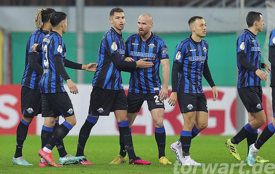 Der SC Paderborn, der in der 2. Runde Werder Bremen aus dem Pokal warf, strahlte in der ersten Stunde nun keine weitere Torgefährlichkeit aus, spielte nahezu ohne eigene Offensive. Florian Müller muss erst rund um Minute 60 wieder eingreifen. Der eingewechselte Conteh bekommt einen langen Ball in den Lauf und verstolpert den Ball in der Annahme. So kann sich der herauseilende Müller vor dem Joker auf den Ball werfen.
