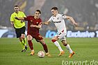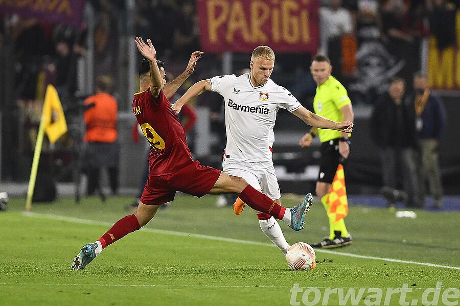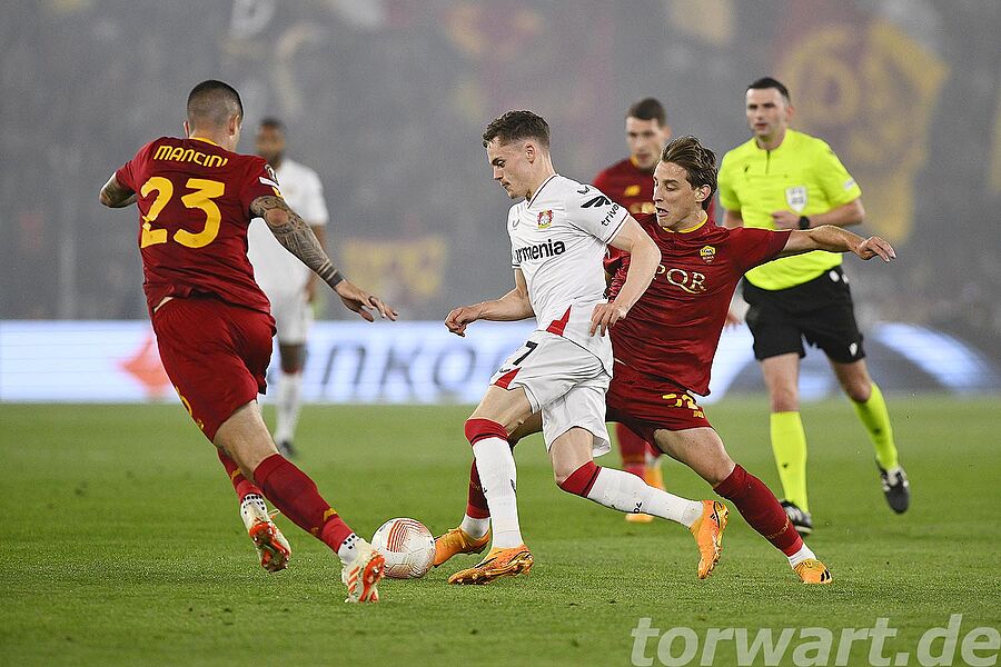 AS Rom erarbeitet sich eine gute Ausgangslage für das Halbfinal-Rückspiel in Leverkusen in der kommenden Woche. Dabei erwischten die Gäste den durchaus besseren Start in die Parte und hatten früh zwei gute Chancen. So scheiterte Andrich in der ersten Minuten mit seinem Abschluss aus halbrechten 14 Metern an Rui Patricio, der den nicht wirklich kraftvollen Abschluss sicher in seinen Armen begraben konnte. Wenig später schoss Wirtz ganz knapp am Tor vorbei, während der Torwart der Römer nicht mehr an den Ball gekommen wäre. Viel mehr passierte anschließend vor dem Tor der Gastgeber in der ersten Hälfte nicht mehr.