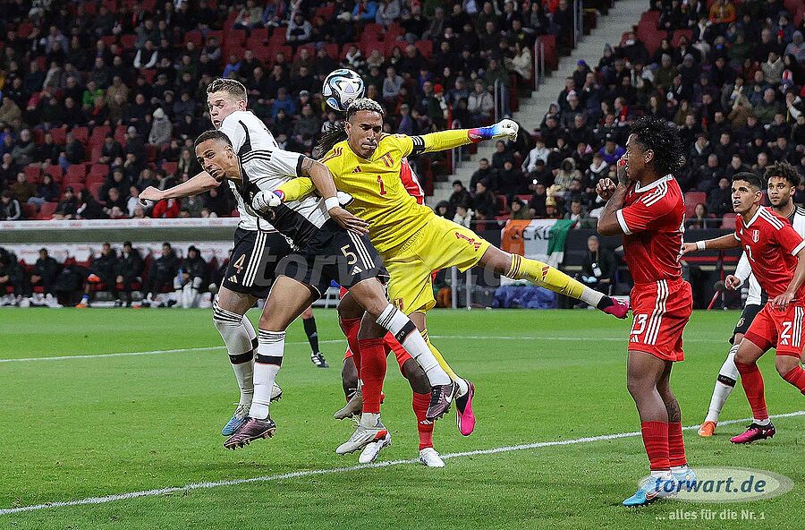 Die 0:2-Niederlage der Peruaner in Mainz ist letztlich auch in der Höhe gerechtfertigt. Vor allem in der ersten Halbzeit waren die Gastgeber die deutlich bessere Mannschaft und hatte einige Chance. Schon der erste richtig gut vorgetragene Angriff wurde für die Führung durch Füllkrug vollendet. Ein langer Ball von Schlotterbeck fand Havertz in der Mitte, der mit der Brust auf Füllkrug ablegte und dieser aus 10 Metern den Ball im Tor unterbringen konnte, wobei sein Schuss ziemlich zentral ausfiel. Allerdings bewegte Gallese spekulativ nach rechts und konnte trotz einer Berührung des Balles mit dem Bein den Gegentreffer nicht mehr verhindern.