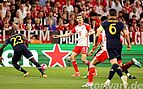 4 Minuten später gingen die Bayern durch einen verwandelten Elfmeter von Kane in Führung. Dieser schob den Ball flach in die linke Ecke, während der Torhüter der Königlichen in die andere Richtung unterwegs war. Auch anschließend hatten die Bayern weitere gute Szenen, doch fehlte mitunter die Zielgenauigkeit, sodass auch Lunin noch mehrfach gut abwehren konnte. In der Schlussphase war Real wieder besser im Spiel, wobei nach dem Ausgleich weitere gute Torchancen nicht mehr zu verzeichnen war.