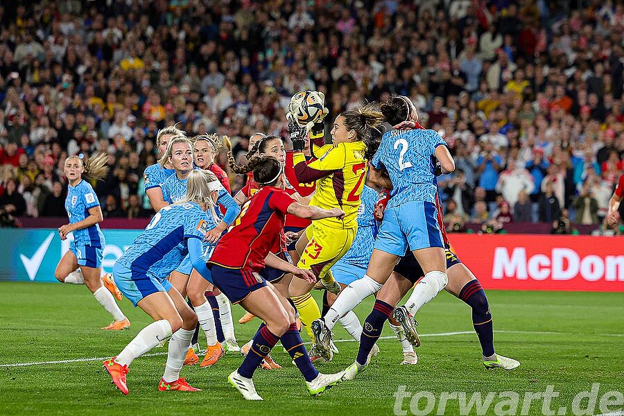 Nach knapp 70 Minuten bekam Spaniern Elfmeter zugesprochen, doch Earps ahnte die richtige Ecke und hielt den Versuch von Hermoso fest. Kurz vor Ende der regulären Spielteigt die englische Torhüterin noch einmal ihre Klasse, als sie einen Schuss aus spitzem Winkel und kurzer Distanz überragend mit dem Fuß abwehrte. Zum Sieg vermochte sie damit ihrem Team aber nicht mehr zu verhelfen.