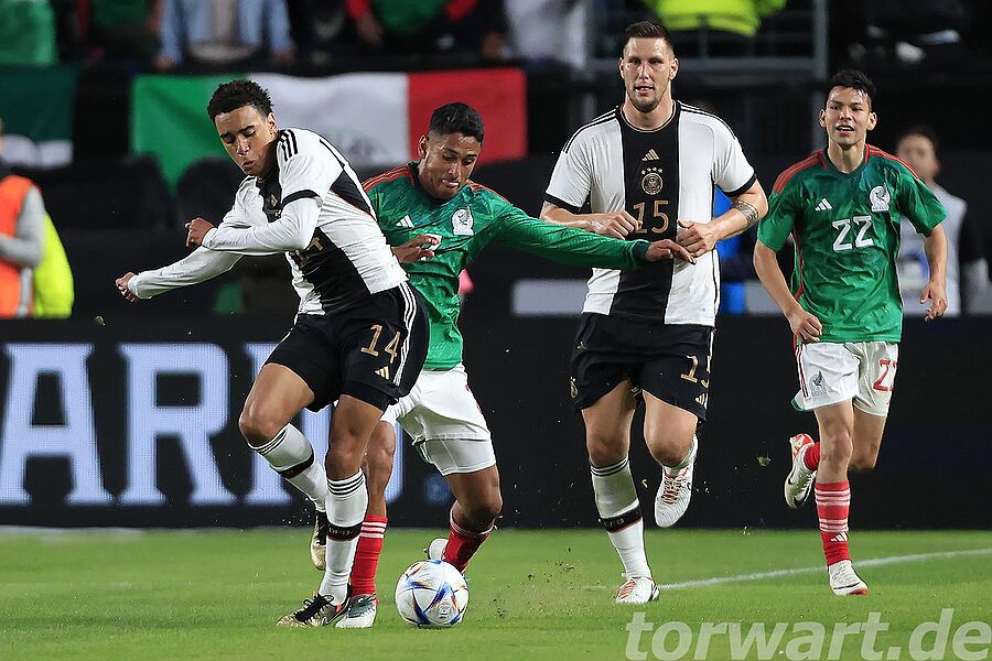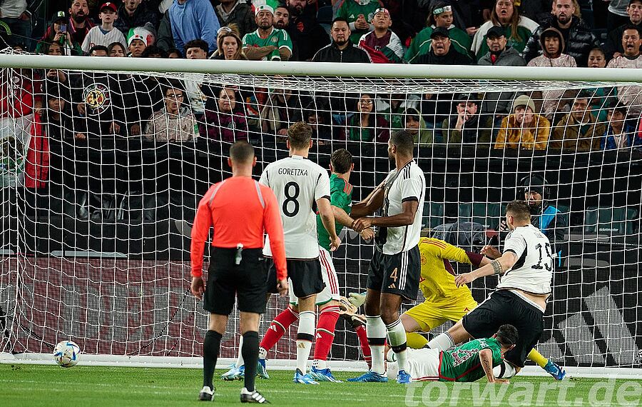 Die Gastgeber präsentierten sich von Beginn an als unbequemer Gegner und setzten mehrfach die deutsche Abwehr unter Druck und dennoch hatte Wirtz in der 5. Minute die frühe Führung auf dem Fuß, als er frei vor Ochoa zum Abschluss kam, dieser sich aber ganz breit machte und somit abwehren konnte. In der 25. Minute erzielte Rüdiger die Führung für die deutsche Mannschaft. Ein Eckball von rechts wurde auf den ersten Pfosten gezogen und dort dann auf den zweiten Pfosten verlängert, wo Rüdiger einlief und aus 4 Metern einköpfen konnte. Ochoa musste dabei auf der Linie bleiben und kam nicht mehr schnell genug in die andere Ecke des Tores, wodurch er chancenlos war. Nach einer guten halben Stunde hatte Groß einen Kopfball zu verzeichnen, doch stand Ochoa gut und wehrte mit einer guten Reaktion ab.in der 35. Minute erzielte Müller das vermeintliche 0:2, doch wurde der Treffer auch ohne VAR aufgrund einer knappen Abseitsstellung zurecht nicht gegeben.
