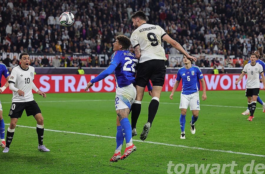 Kurz vor der Pause erhöhte Kleindienst auf 3:0 und machte somit schon den Deckel auf die Partie. Kimmich kam rechts nahe der Grundlinie zur Flanke und fand damit Kleindienst am zweiten Pfosten, der aus 3 Metern in die linke Ecke einköpfen konnte. Donnarumma kam zwar noch an den Ball heran, doch erreichte diesen erst hinter der Linie.
