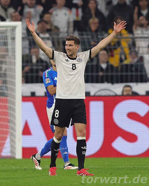 Es war ein guter Beginn der deutschen Mannschaft. Gleichzeitig blieben bis zur 26. Minute die klaren Abschlüsse aus. Dann prüfte SanéDonnarumma aus 14 Metern auf die kurze Ecke, doch der Torwart war schnell am Boden und hielt das Spielgerät fest. Nach 29 Minuten bekam die deutsche Mannschaft einen Elfmeter zugesprochen. Diesen verwandelte Kimmich souverän wuchtig und präzise flach in die linke Ecke. Donnarumma war in die richtige Ecke unterwegs, kam aber an den Ball einfach nicht mehr heran. In der 36. Minute erhöhte Musiala. Nachdem Donnarumma einen Versuch von Kleindienst aus dem Winkel fischte, schimpfte er über seine Hintermannschaft, sodass sich letztlich niemand mehr für die schnellausgeführte Ecke von Kimmich interessierte und Musiala locker einschießen konnte, noch ehe Donnarumma wieder im Tor war oder ein Verteidiger beim Torschützen.