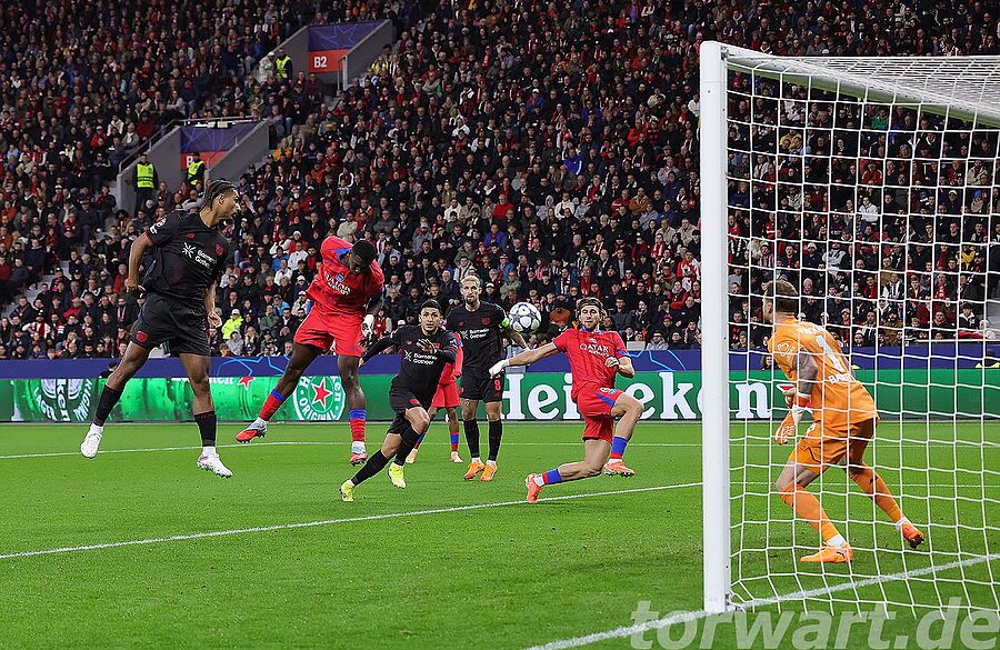Ein rabenschwarzer Tag für Flekken und die Werkself mit eine der höchsten deutschen Champions-League-Niederlagen der Geschichte (foto: firo)