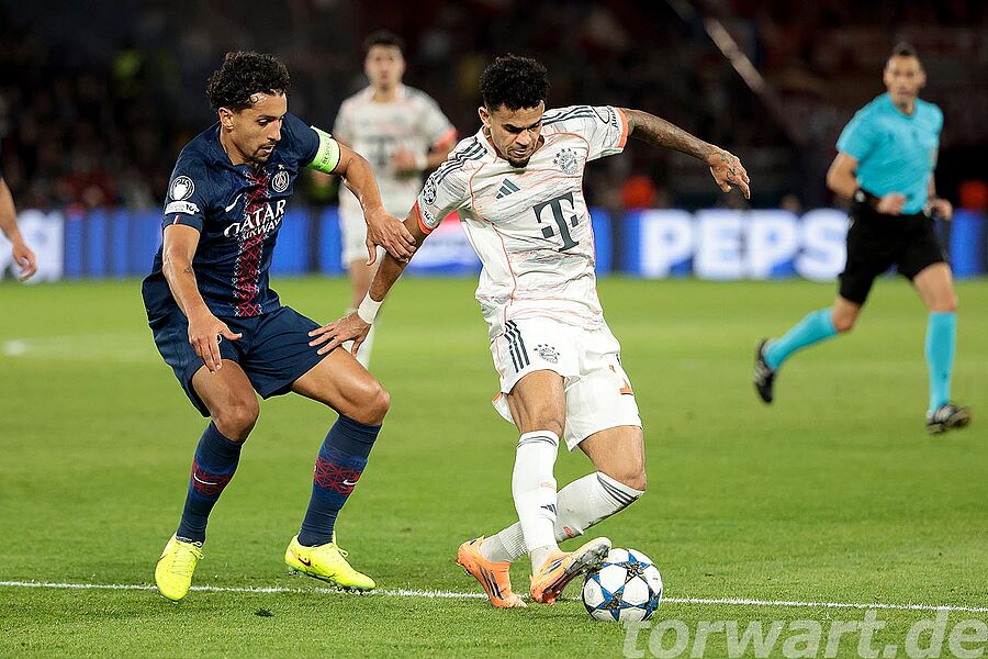 Die Bayern gingen bereits in der 4. Minute der Partie in Führung. Durch einen Steckpass von Gnabry war Olise frei vor Chevalier, scheiterte aber im 1 gegen 1 am Pariser Torwart. Allerdings prallte der Ball zu Luis Diaz, der aus 10 Metern abstauben konnte. Auf der Linie versuchte Marquinhos noch zu blocken, doch das gelang ihm nicht.