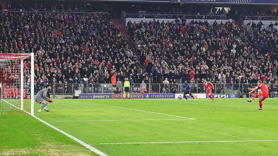 In der 70. Minute gewann Tah am eigenen Strafraum den Ball und leitete damit einen Konter ein. In der Folge spielte Karl einen tollen Ball in den Lauf von Diaz, der frei vor dem aufgerückten Sportiello auftauchte und diesen mit einem feinen Lupfer überwand. Sportiello wiederum kam noch entgegen und warf sich letztlich regelrecht entgegen, wodurch er den Lupfer von Diaz zusätzlich noch begünstigte. Danach ließen es die Bayern vor dem gegnerischen Tor ruhiger angehen.