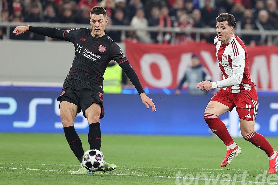 Nach der Pause blieb es intensiv, wobei erneut die klaren Chancen für die Griechen ausblieben. Durch den Doppelschlag von Schick wurde den Hausherren der Elan genommen. Dadurch war Blaswich kaum noch im Fokus. Die gefährlichste Szene war eine Hereingabe vor das Tor, bei der Blaswich auf Nummer sicher ging und das Spielgerät wegfaustete, bevor es richtig gefährlich wurde. Bis zum Ende mühte sich Olympiacos, doch fehlte nunmehr wiederum die notwendige Präzision im Abschluss.
