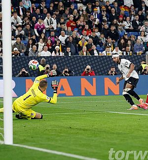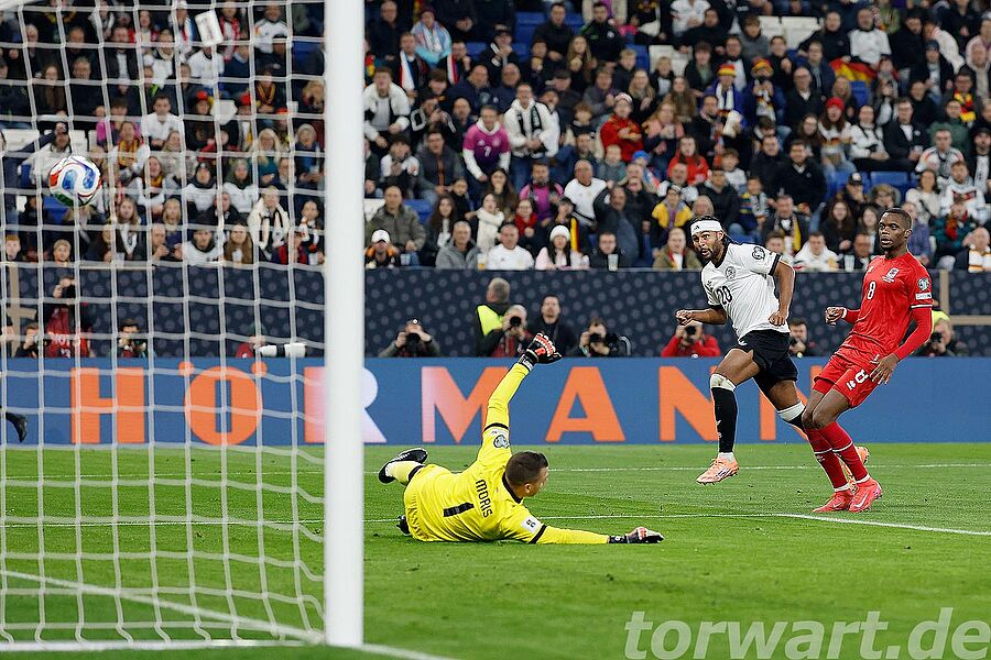 Trotz langer Unterzahl bekam Anthony Moris nicht die größten Chancen gegen sich - Viermal musste er gegen die DFB-Elf aber trotzdem hinter sich greife (foto: firo)