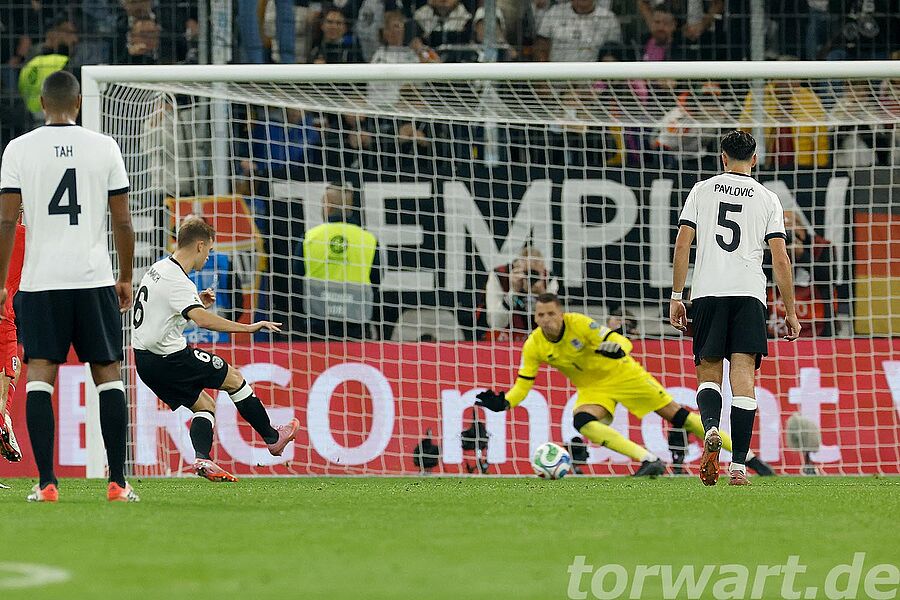 In der 20. Minute bekam die deutsche Mannschaft einen Elfmeter zugesprochen, den Kimmich problemlos in die rechte Ecke schob, während der Keeper in die andere Ecke unterwegs war. Gleichzeitig mussten die Gäste ab diesem Zeitpunkt in Unterzahl agieren. Bis zur Pause gab es dann noch weitere Chancen, doch konnte sich der Torwart nun auch auszeichnen.