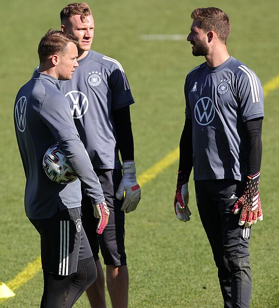 Wer dabei der Favorit wäre, ist schwer zu sagen, denn beide Torhüter haben keine vollends herausragende Saison absolviert. Dennoch hängt alles an Neuer. Dies sagte auch Mats Hummels gegenüber der Presse: „Ich glaube, Manuel ist der beste Torhüter, den ich je gesehen habe, Punkt." Sollte einer der drei Torhüter doch noch ausfallen, stünde noch Stefan Ortega als Nummer 4 auf Abruf bereit. Im Sport 1 Podcast „Meine Bayern-Woche" sagte Ortega über den Anruf von Bundestorwarttrainer Köpke: „in dem Moment als der Anruf kam, war ich sehr sehr überrascht und ziemlich sprachlos. Herr Köpke hat mich zwei Tage, bevor die Nominierung herausgegangen ist, angerufen und mir mitgeteilt, dass sie mich sehr wohl verfolgt haben und mich auch gerne belohnen wollen - und das mit der Position auf Abruf."