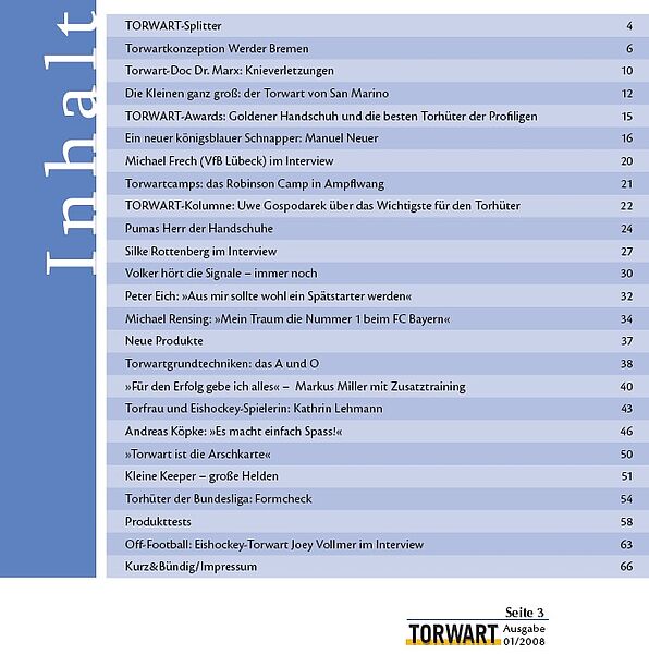| Home > Magazin > TORWART-Zeitschrift > 2. Ausgabe (01/2008) > Inhalte
