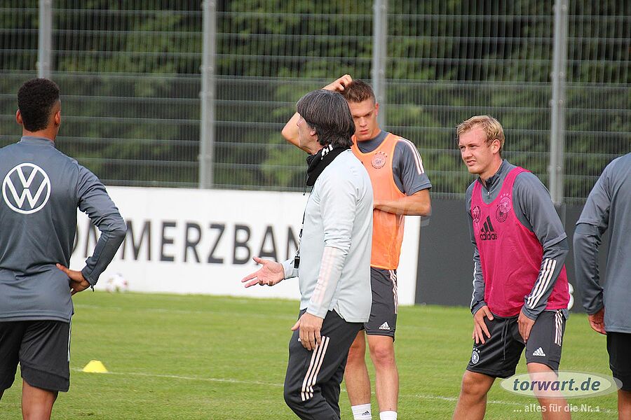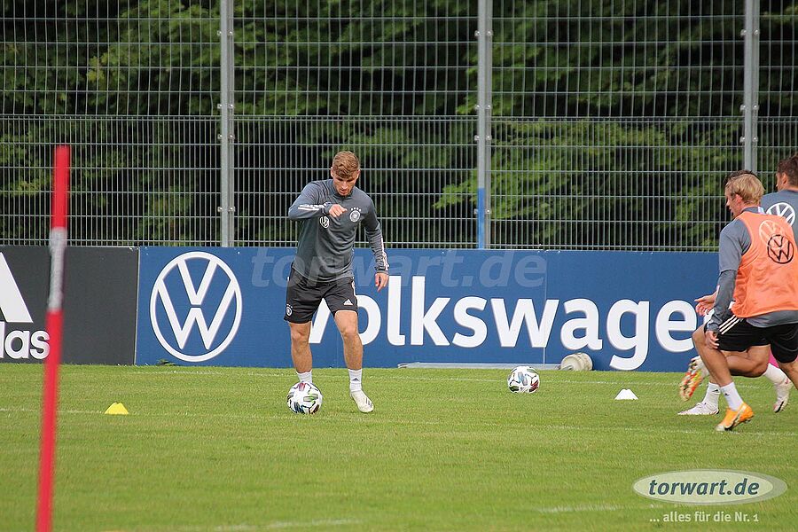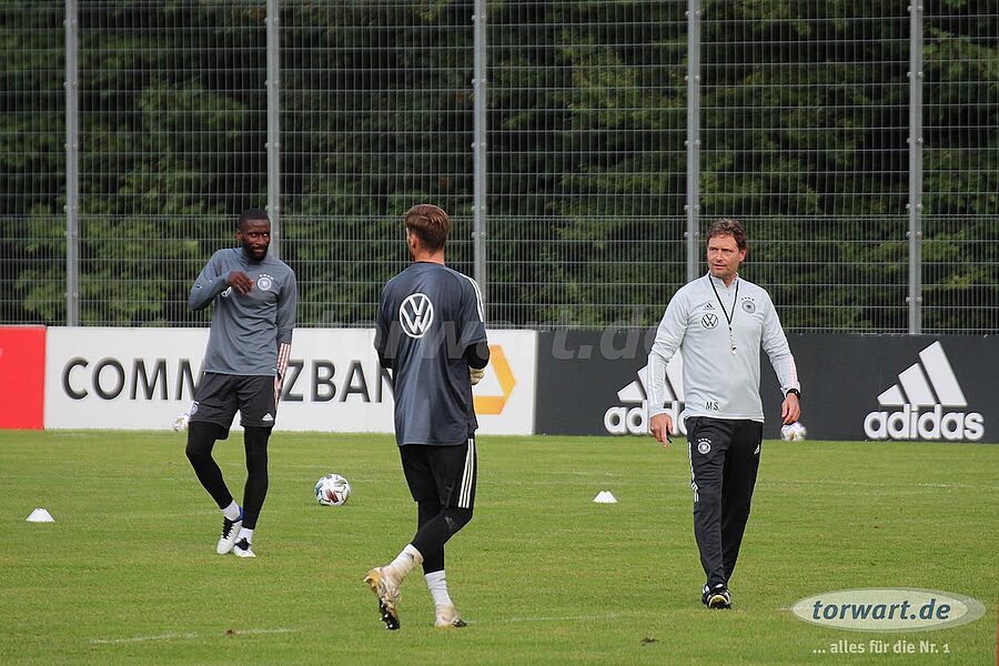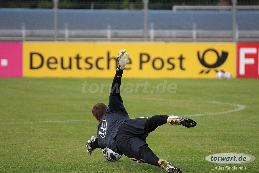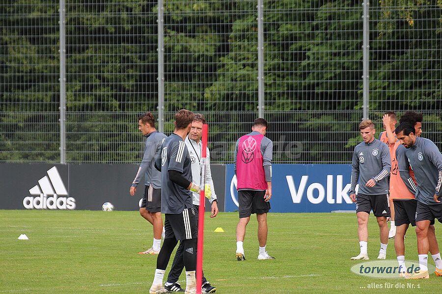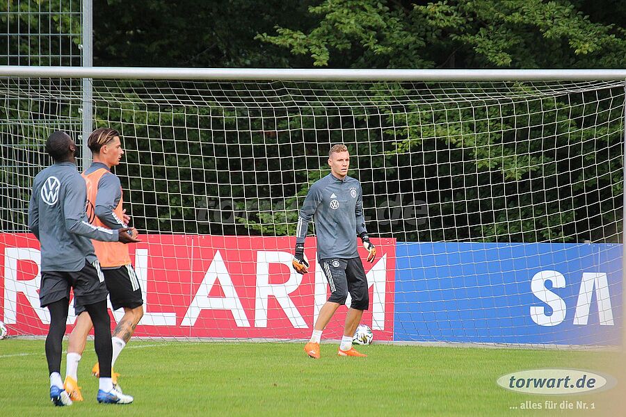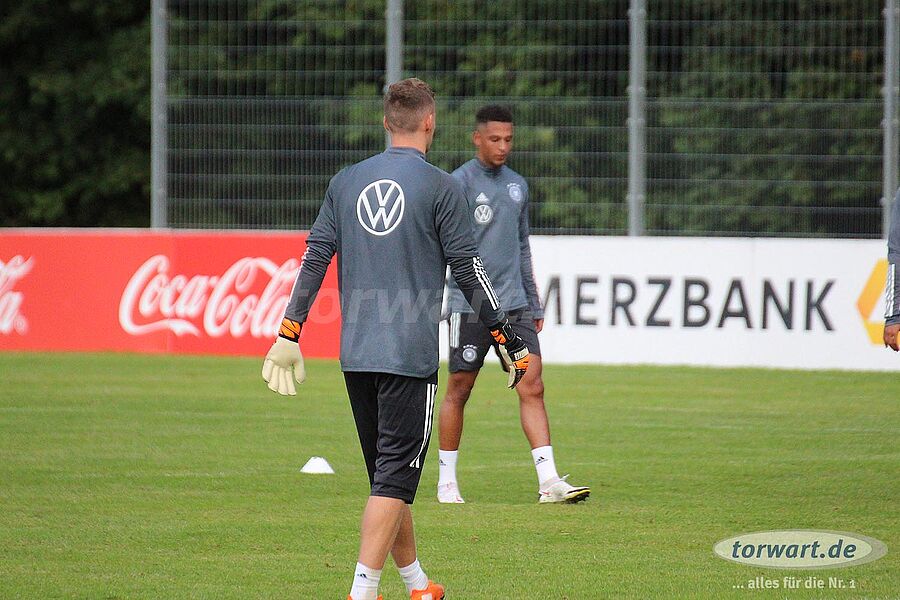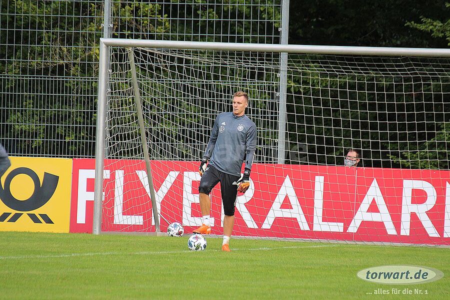 torwart.de war für euch am 31. August bei einer der letzten Trainingseinheiten der deutschen Nationalmannschaft im ADM-Sportpark in Stuttgart-Waldau. Löw hat den Kader der Nationalmannschaft im Vergleich zum letzten Länderspiel gegen Nordirland umstrukturiert. Neben der Erholungspause für die Bayern-Spieler Manuel Neuer, Joshua Kimmich, Leon Goretzka sowie Serge Gnabry und die Leipzig-Spieler Lukas Klostermann und Marcel Halstenberg gab es eine Verletzungspause für Barca-Keeper Marc-André ter Stegen. Außerdem hat Jogi Löw die Neuzugänge Oliver Baumann (TSG Hoffenheim), Robin Gosens (Atlanta Bergamo) und Florian Neuhaus (Borussia Mönchengladbach) in den Kader nominiert.