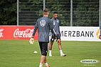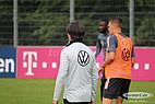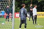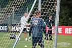 Nun kam Torwarttrainer Andreas Köpke dazu und hat bei allen drei Torhütern die Basistechnik trainiert. Es hat immer ein Torhüter Bälle von Köpke zugeschossen bekommen, die anderen zwei haben parallel sich selbständig zugepasst oder sich unterhalten.