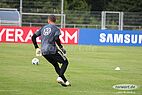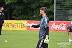 Im ersten Teil der Trainingseinheit haben sich die Torhüter Trapp, Leno und Baumann größtenteils selbständig aufgewärmt.