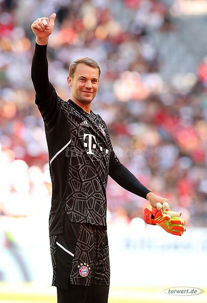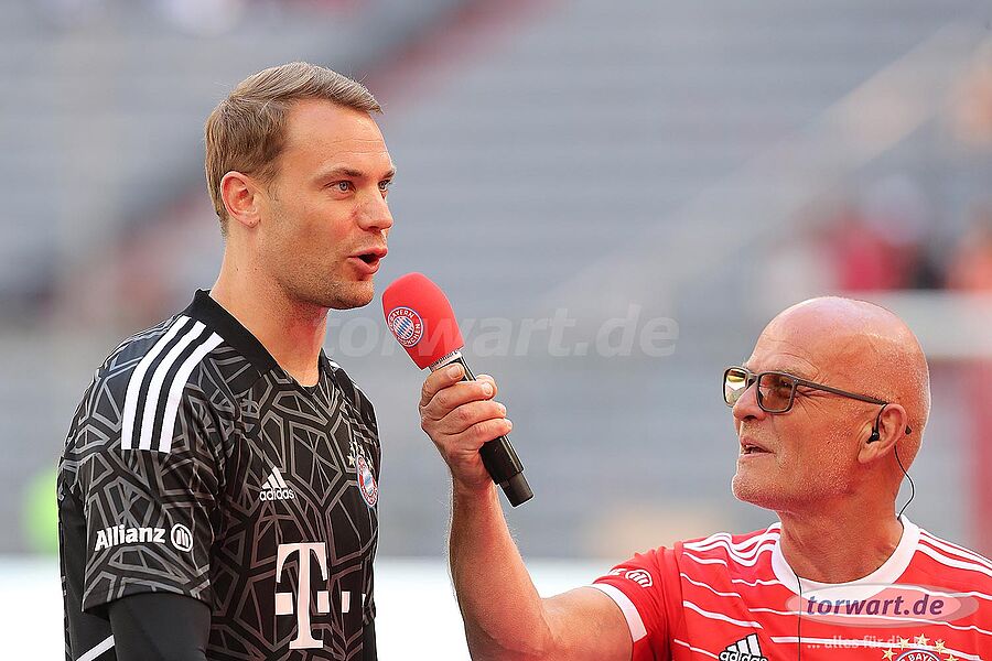 Wir schauen im anschließenden öffentlichen Training speziell auf die Torhüter Manuel Neuer, Sven Ulreich und Johannes Schenk, wie sie von Torwarttrainer Toni Tapalovic für die anstehenden Übungsformen mit dem Team aufgewärmt wurden.