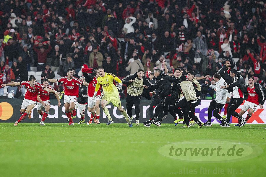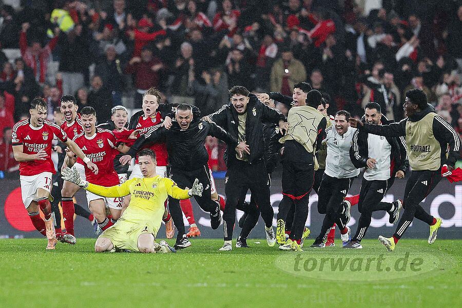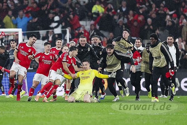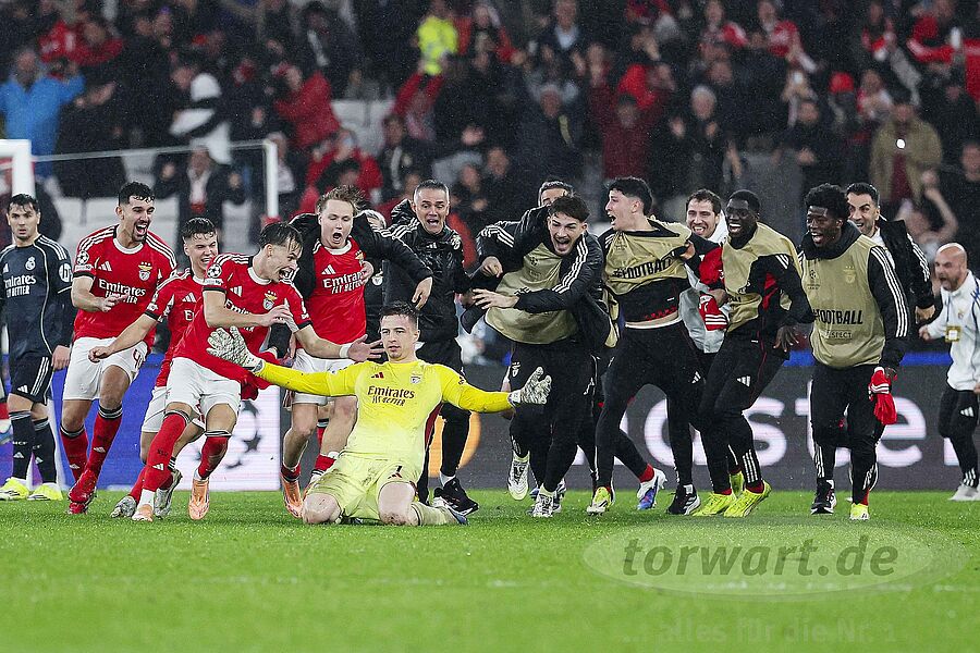 Der Jubel war grenzenlos bei Benfica Lissabon und ganz besonders bei Anatoliy Trubin. Völlig energiegeladen sprintete er in Richtung der Mittellinie, breitete die Arme aus und rutschte auf den Knien, ehe er von seinen Mannschaftskollegen begraben wurde. Soeben hatte er noch das Erreichen der Play-offs des portugiesischen Klubs gegen Real Madrid gesichert.